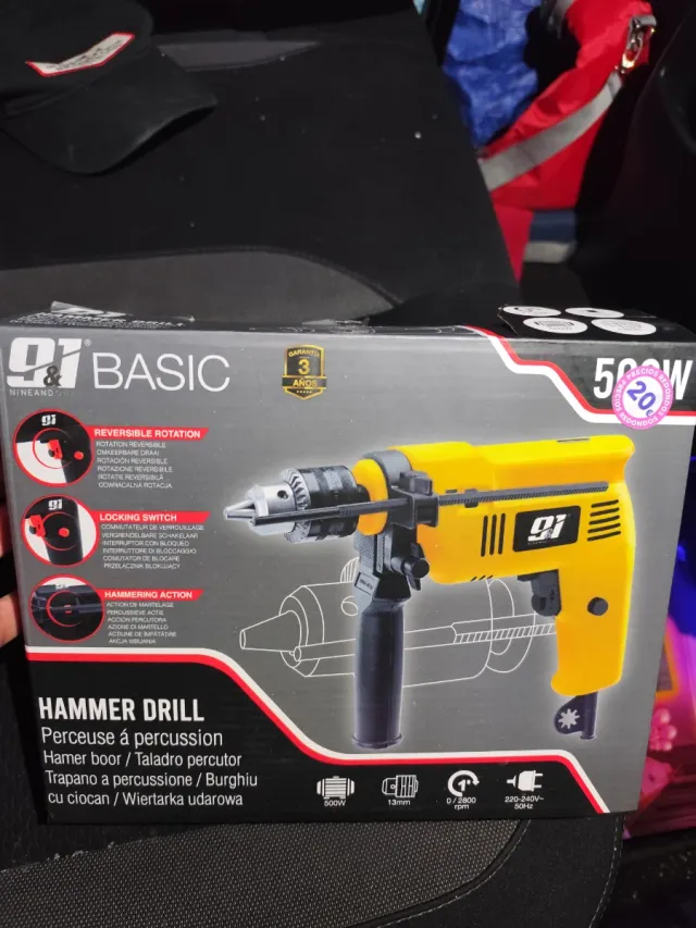 Detalles del productoTaladro con función percutor de la marca 91 BASIC. Usado una sola vez para 3 agujeros en aluminio.