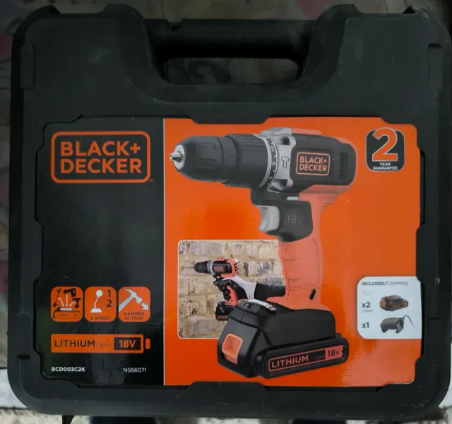 Detalles del productoTaladro atornillador percutor inalámbrico Black+Decker.