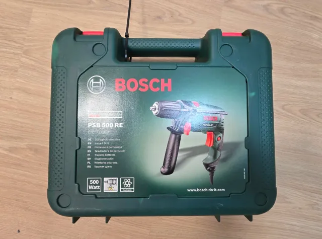 Taladro percutor Bosch PSB 500 RE en su maletín original. Sin desprecintar. Nunca se ha usado. Potencia de 500 Watt.