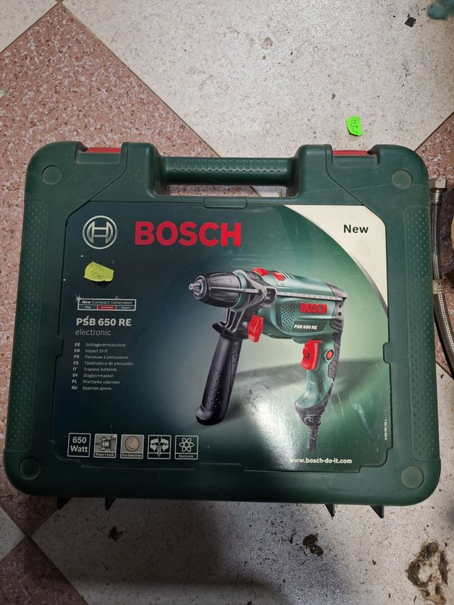 Detalles del productoTaladro percutor Bosch PSB 650 RE en su maletín original.