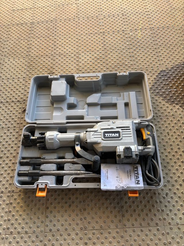 Detalles del productoVendo taladro percutor eléctrico Titan TTB811DHR, seminuevo y en muy buen estado. Ha tenido poco uso y está muy bien cuidado, funcionando perfectamente. Ideal para tareas exigentes de perforación y cincelado en materiales duros como hormigón, ladrillo o piedra.