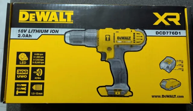 Detalles del productoTaladro percutor a batería Dewalt XR modelo DCD776D1.