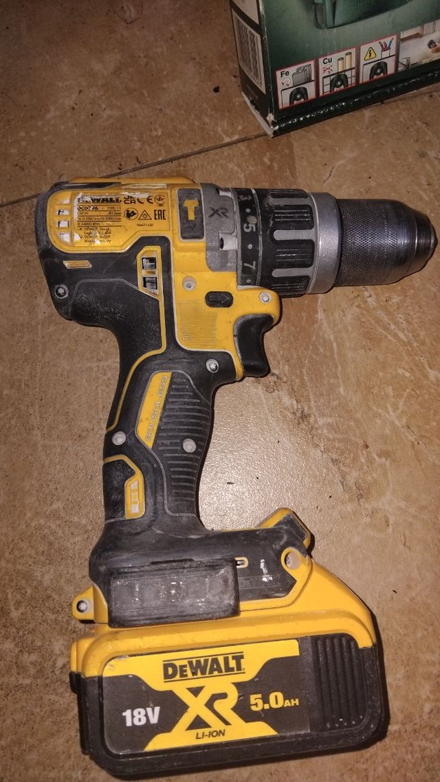 Taladro percutor inalámbrico DeWalt. - Modelo XR 18V. - Batería de 5.0Ah Li-Ion. - Motor Brushless. Con cargador y en buen estado
