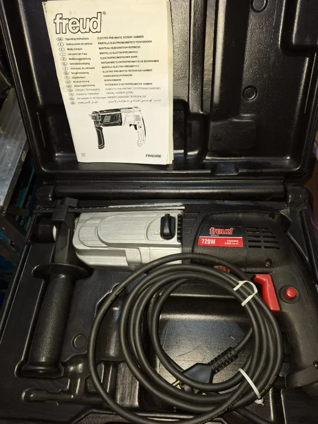 Detalles del productoTaladro percutor de la marca Freud, modelo FRH24RE con 720W de potencia.