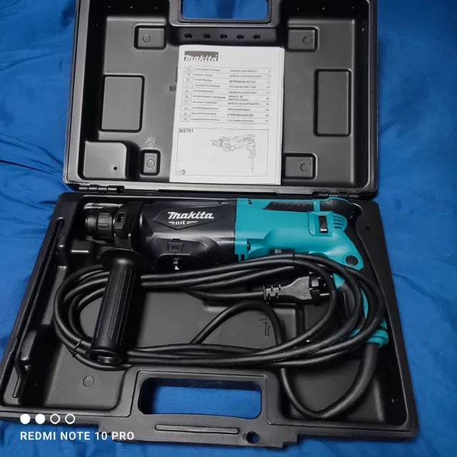Taladro percutor Makita M8701 en su maletín original. Radial makita - Incluye manual de instrucciones. - Color azul y negro.