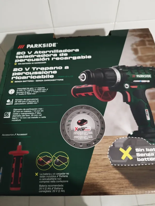 Detalles del productoTaladro percutor Parkside 20V, ideal para trabajos de bricolaje y construcción. Este modelo es parte de la serie X20V TEAM.
