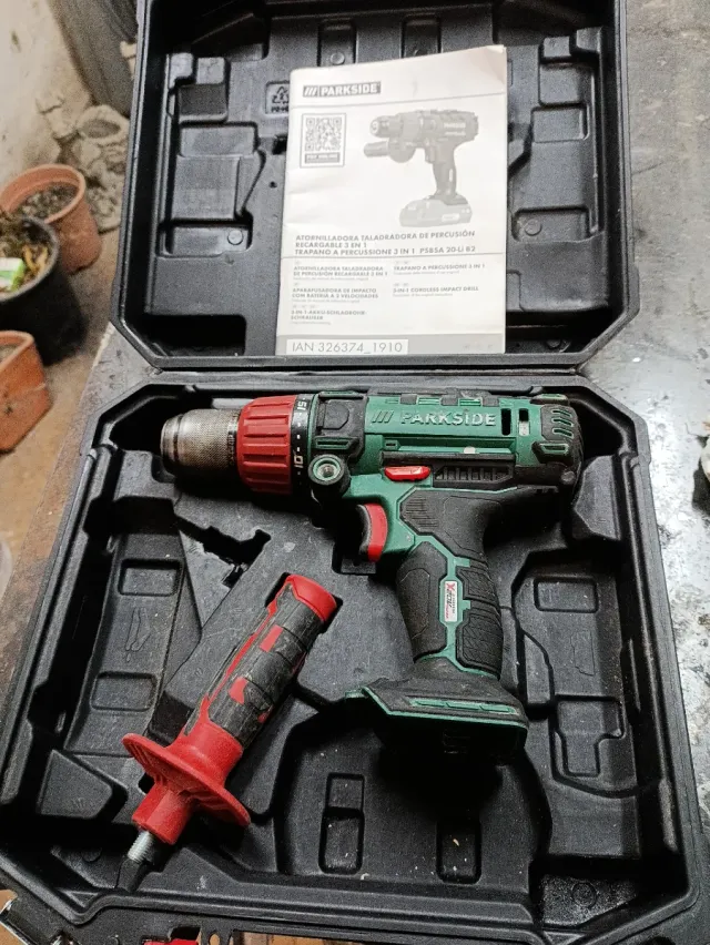 Detalles del productoTaladro percutor recargable Parkside 3 en 1.