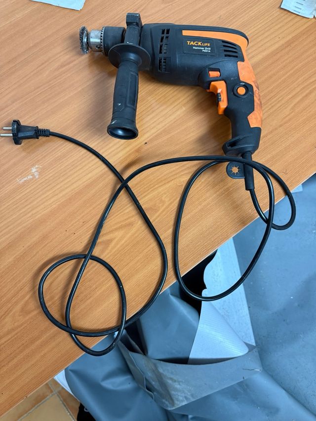 Taladro percutor TACKLIFE modelo PID01A con cable. - Mango auxiliar para mayor control. - Incluye cepillo metálico. - Enchufe europeo.