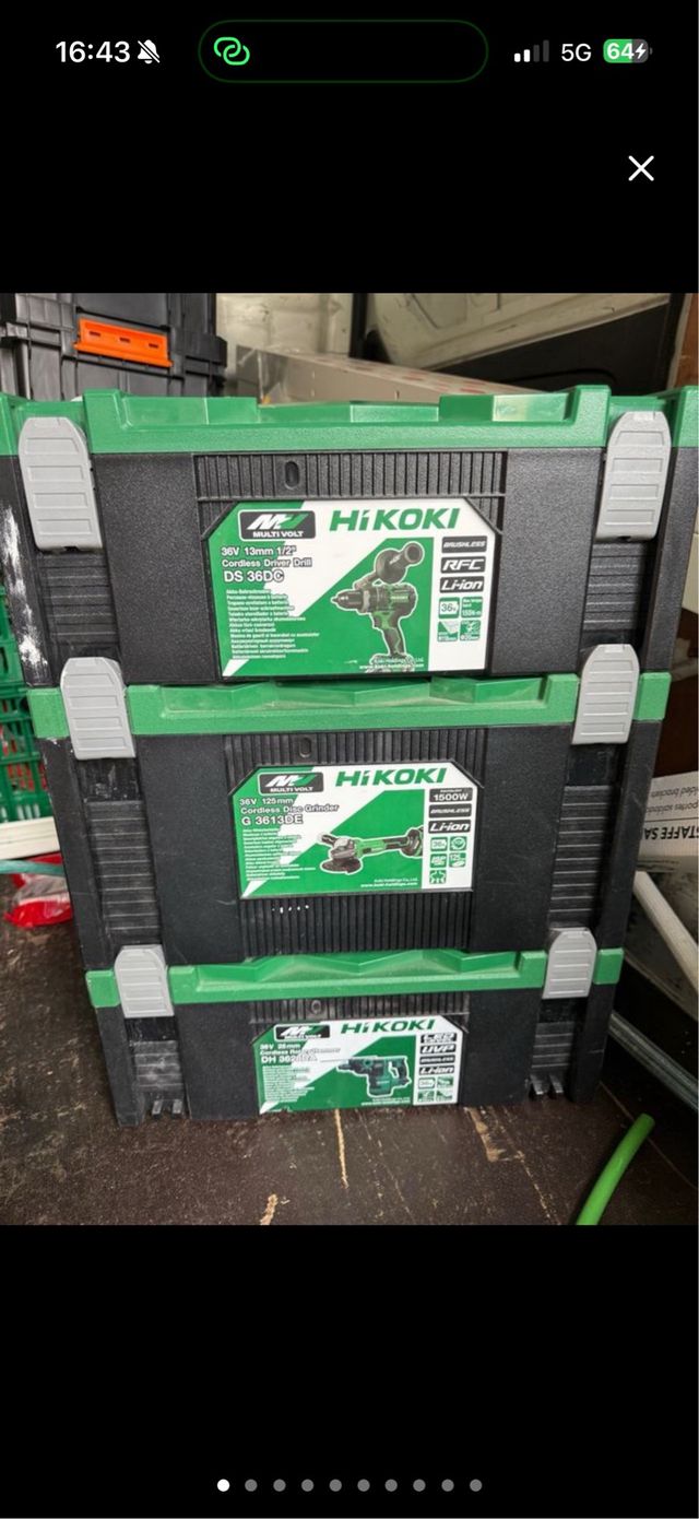 Set de herramientas eléctricas HiKOKI de 36V. - Taladro radial y atornillador DS 36DB. - Amoladora angular G 3613DF.