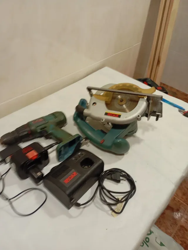 Detalles del productoSe vende lote de herramientas eléctricas, incluye taladro, sierra circular y dos cargadores.la batería no funciona