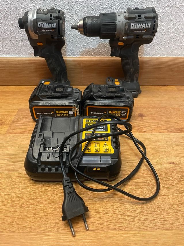 Detalles del productoSe venden dos taladros DeWalt en edición especial McLaren, junto con dos baterías de 18V XR 5.0 Ah y un cargador.