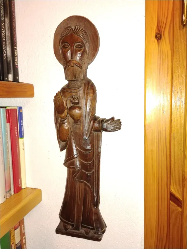Detalles del productoFigura de madera tallada a mano, representando el Corazón de Jesús. Ideal para colgar en la pared.