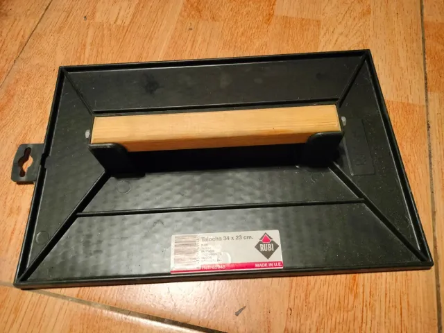 Talocha de la marca Rubi, ideal para trabajos de albañilería y construcción. - Medidas: 34 x 23 cm. - Mango de madera. - Fabricada en la UE.