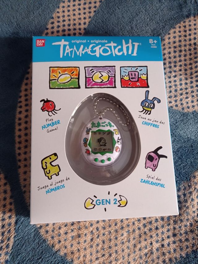 Detalles del productoTamagotchi clásico caracteres japoneses de generación 2. Carcasa rara y descatalogada y embalaje con la tipografía antigua de Tamagotchi.