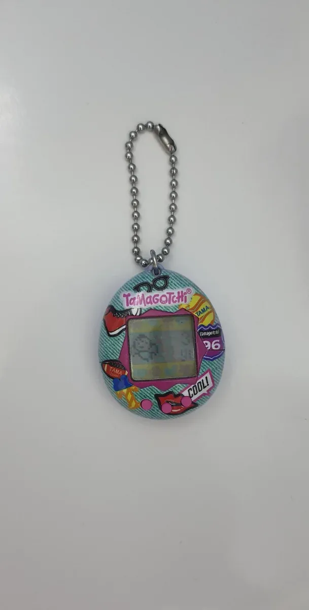 Tamagotchi original azul de Bandai con cadena. - Diseño colorido con motivos. No tengo la caja original.