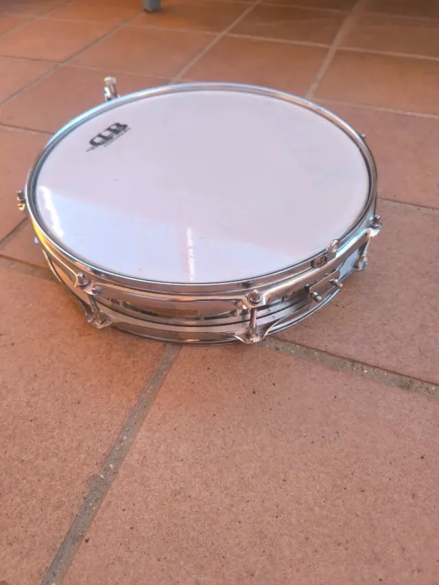 Detalles del productoTambor de caja metálico con acabado brillante. Funda y baquetas.