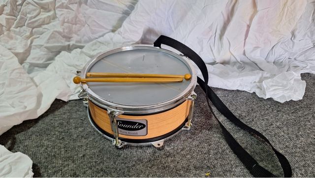 Tambor de juguete con un diseño atractivo y dos baquetas para empezar a tocar. - Cuerpo de madera. - Parche sintético. - Incluye 2 baquetas.