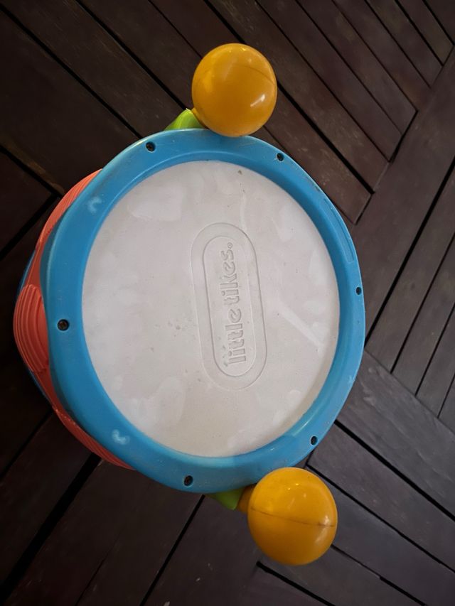 Tambor de juguete de la marca Little Tikes, con un diseño colorido y divertido. - Tambor con dos mazos. - Color azul, naranja y amarillo. - Marca: Little Tikes.