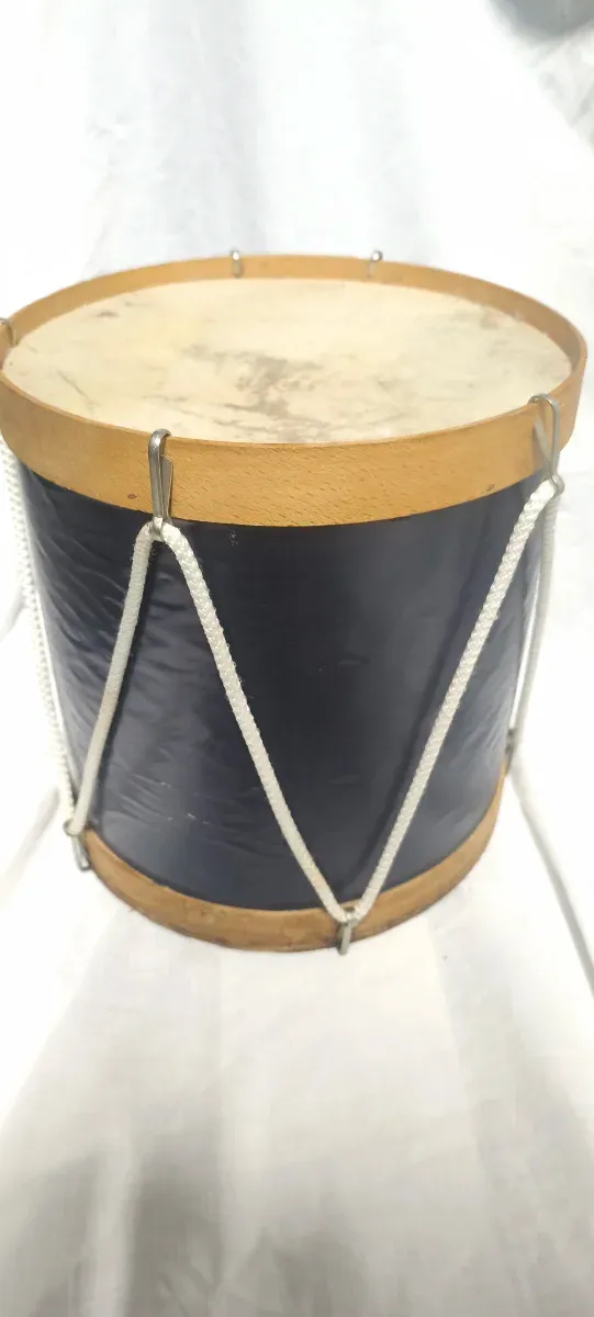 Tambor de madera , ideal para tamborrada infantil. - Aro de madera. - Cuerdas blancas para sujeción. - alto 27'5 centímetros,ancho 26 centímetros.