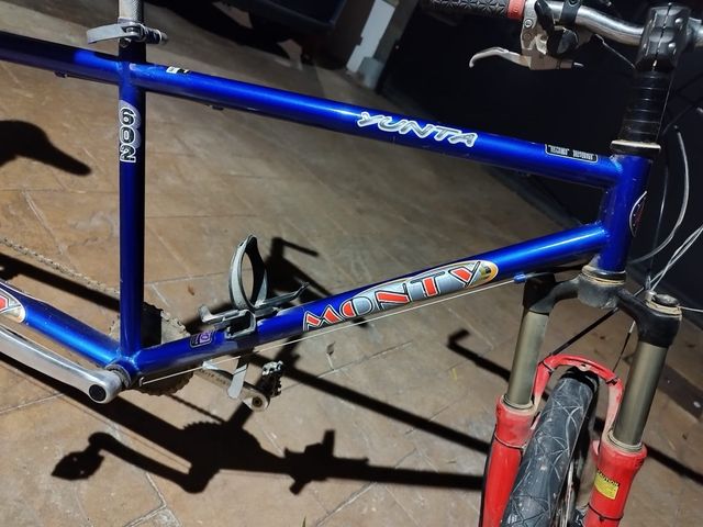 Bicicleta tándem Monty Yunta 602. - Cuadro azul. - Horquilla delantera roja. - Portabidón incluido. complementos Simano De Sta en perfecto estado