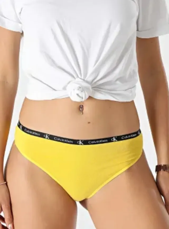 Tanga Calvin Klein Mujer Amarillo con etiqueta