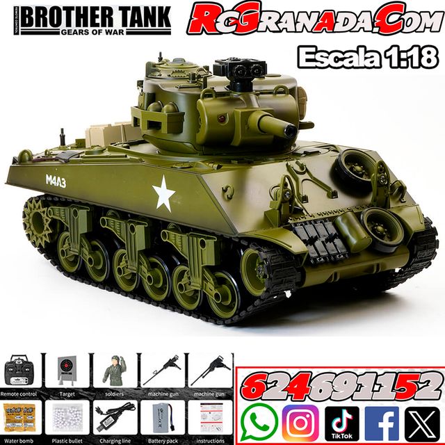 Detalles del productoTANQUE RC 1.18 USA M4A3 SHERMAN GREEN