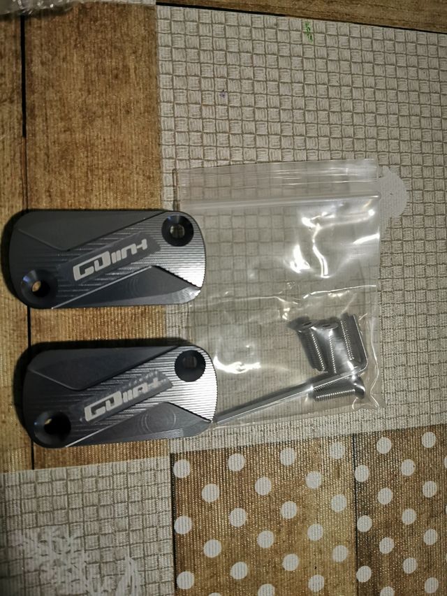 Detalles del productoSe vende cubierta del depósito de freno de aluminio para Kymco Grand Dink de 125cc, con su tornilleria y llave de Allen. Color gris. Medidas 5,3x2,7 y grosor 0,8cm. Mejor trato en mano. GDINK modelo antiguo del 2002 hasta el 2005. Sin usar.