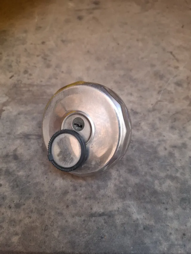 Tapa de depósito de gasolina para Seat 127. Incluye tapón. - Material metálico. - Diseño circular.