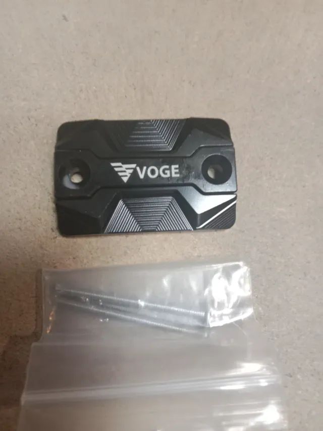 Detalles del productoTapa de diseño para el depósito del líquido de frenos trasero de Voge. Fabricada en metal negro con detalles grabados y el logo de la marca.