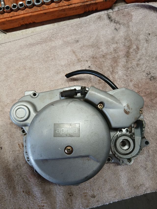 Tapa de embrague para motor AM6 con logo de Aprilia. - Color plateado. Esta en buen estado pregunten cualquier duda