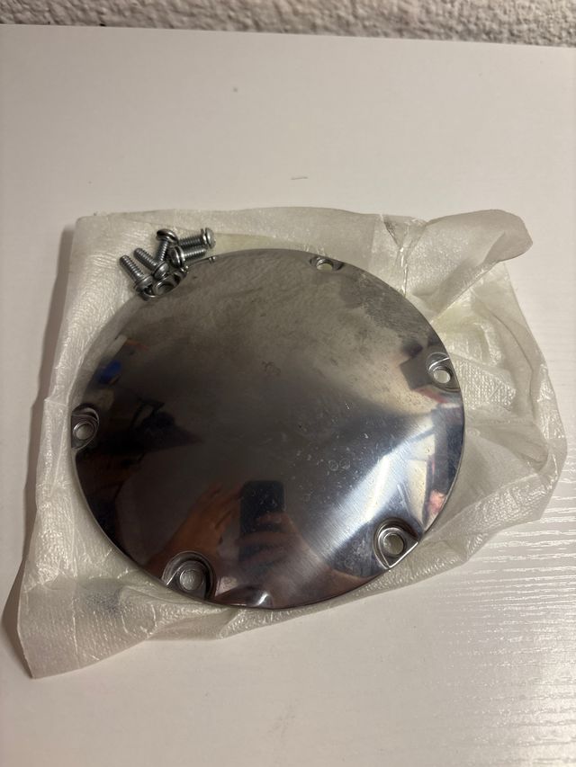 Detalles del productoPreciosa tapa de inspección de embrague original Harley Davidson. Incluye tornillos. Está en perfecto estado, lista para montar.