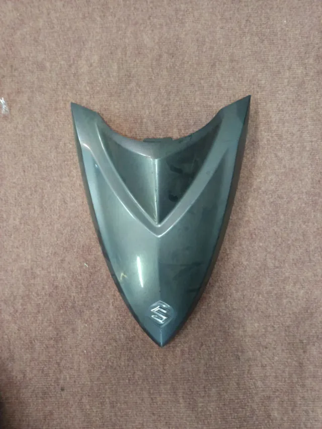 Tapa central frontal para Suzuki UX110 Address. Pieza de plástico con acabado grisáceo y el logo de Suzuki. - Diseño aerodinámico. - Logo de Suzuki integrado.