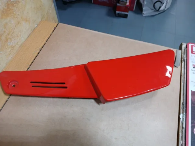 Tapa lateral izquierda para ciclomotor Puch Condor 2. Pieza de color rojo brillante. - Diseño aerodinámico. - Incluye orificio de montaje.