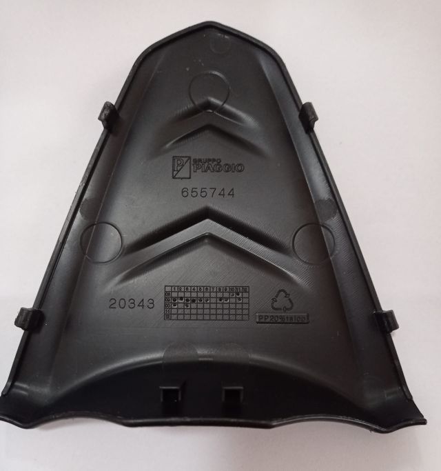 Tapa trasera original para Piaggio Liberty 125. - Pieza de plástico negro. - Logo de Piaggio grabado. - Referencia: 655744.