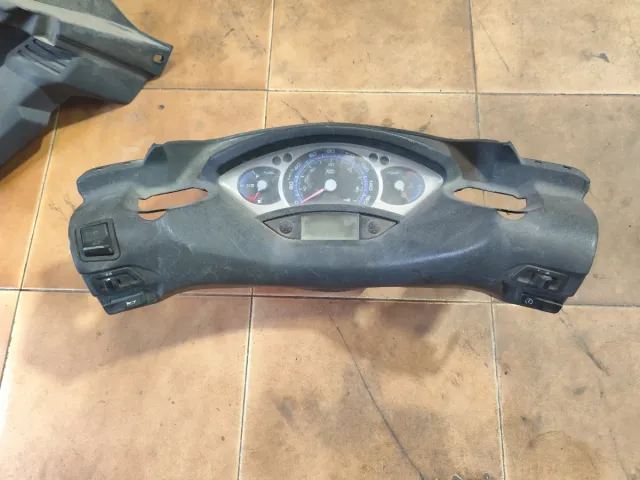 Conjunto de tapa y marcador para Yamaha Xmax 125. - Incluye la carcasa exterior. - Panel de instrumentos con velocímetro y tacómetro. - Pantalla digital central.