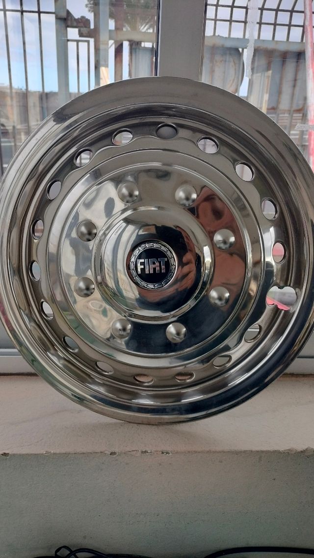 Tapacubos de aluminio parallantas , para una furgoneta o autocaravana,marca Fiat . Solo queda uno los otros 3 se vendió.