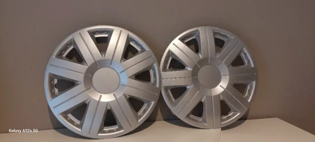 Juego de dos tapacubos plateados de 14 pulgadas...Coches, Remolques, Caravanas etc...10 euros los 2 Tapacubos - Acabado metálico.