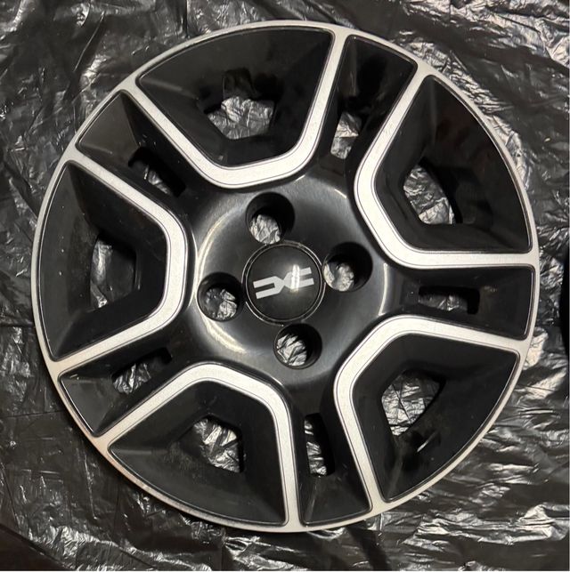 Juego de tapacubos para llantas de 14 pulgadas de Dacia. - Diseño deportivo en negro y plateado. - Logo de Dacia en el centro.