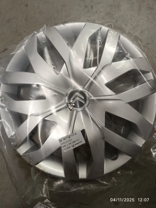 Detalles del producto2 Tapacubos originales 16" de la marca Citroën. Diseño plateado con el logo de la marca en el centro.