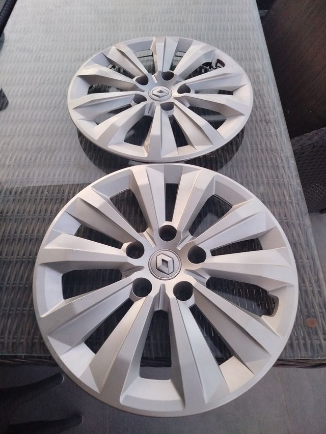 Dos Tapacubos Renault de 16 pulgadas en perfecto estado, algún rallón inapreciable a simple vista, por tan solo 26€, ninguna pestaña rota, hago envíos.son originales