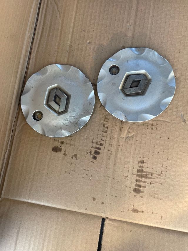 Juego de dos tapacubos para Renault Megane. Presentan el logo de la marca en el centro.