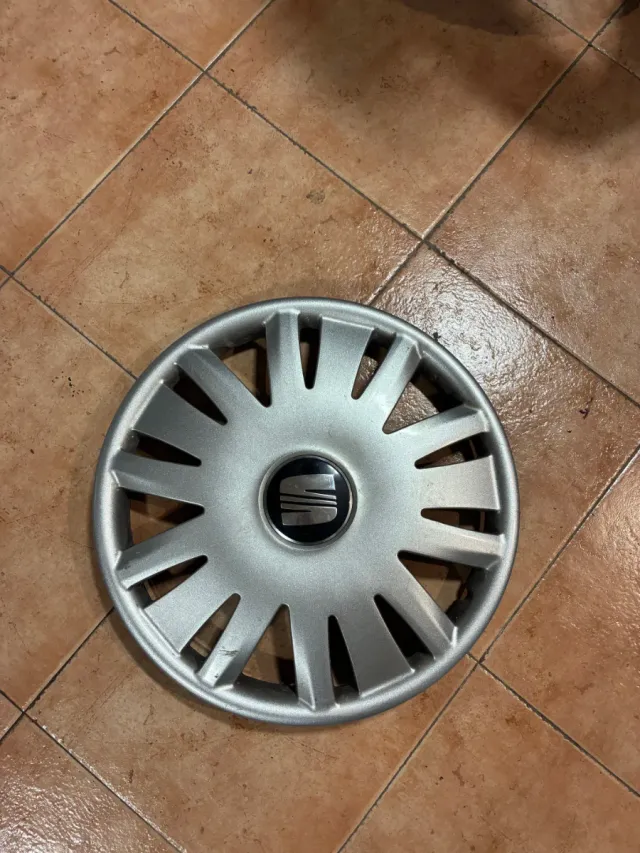 Tapacubos original para Seat Alhambra. Se venden sueltos. - Tamaño: 16 pulgadas. - Diseño plateado con logo de Seat en negro.