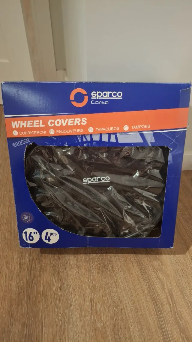 Detalles del productoSet de 4 tapacubos Sparco Corsa para llantas de 16 pulgadas.