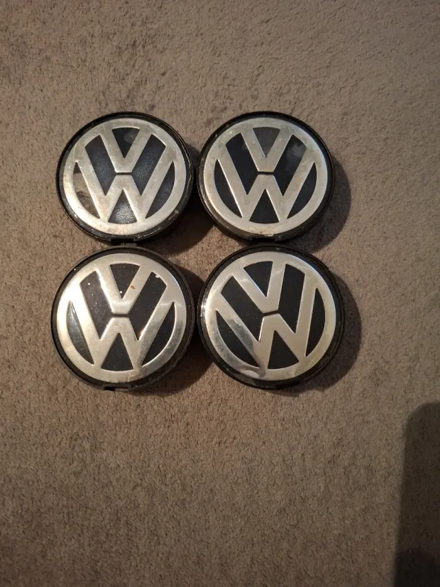 Juego de 4 tapacubos con el logo de Volkswagen. - Diseño plateado y negro. - Diámetro aproximado de 5.5 cm.