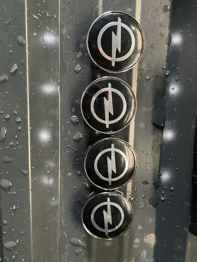 Detalles del productoSet de 4 tapas para bujes de llantas de Opel. Diseño deportivo en negro con el logo plateado.