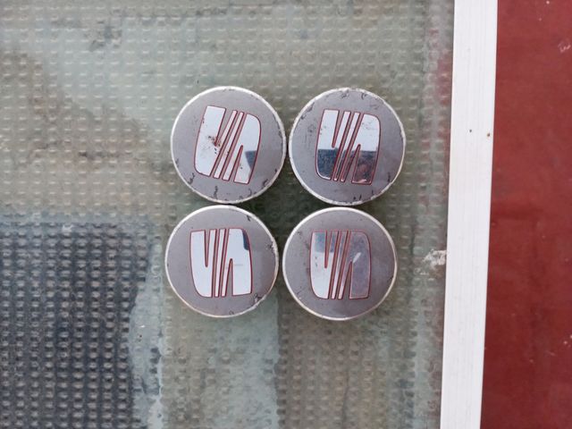 Juego de 4 tapas de rueda para Seat. Dale un toque distintivo a tu vehículo. - Diseño plateado con logo. - Acabado metálico.