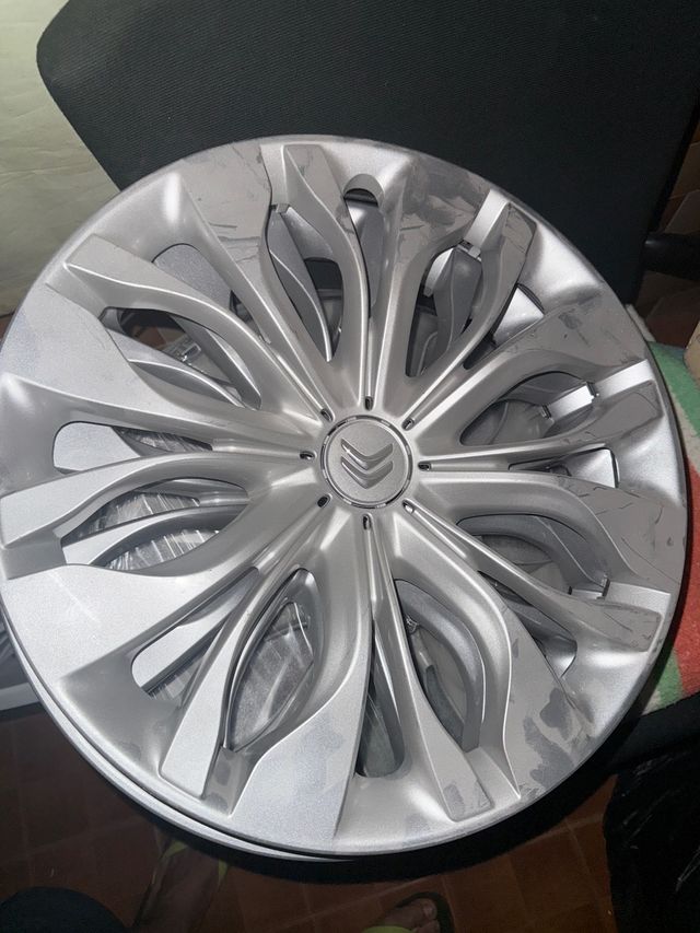 Juego de tapas de rueda para Citroën. Diseño plateado con el logo de la marca en el centro. - Juego de 4 tapas. - Material: Plástico ABS. - Color: Plateado.