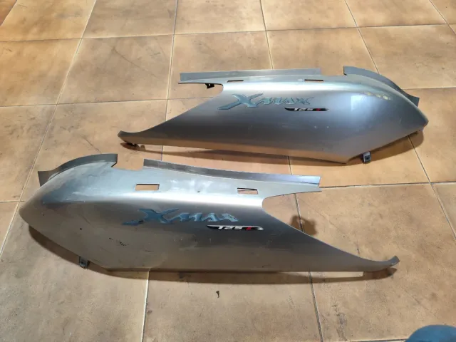 Se venden tapas laterales para Yamaha XMAX 125. Piezas de plástico plateadas con el logo XMAX y 125. - Color plateado. - Logo XMAX y 125.