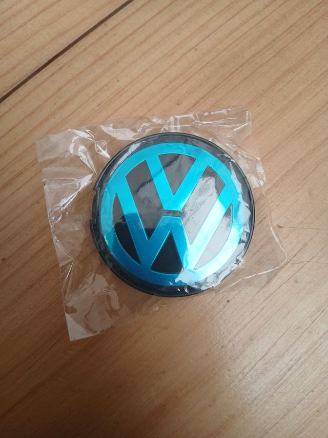 Detalles del productoVendo una tapa para llanta de coche Volkswagen. Es de color gris y negro lo azul es un adhesivo y estan en perfecto estado nunca los he usado por que me equvoque de medida.