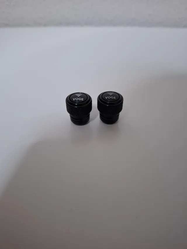 Detalles del productoJuego de dos tapas para válvulas de moto de la marca Voge. Son de color negro y tienen un diseño texturizado para un mejor agarre.